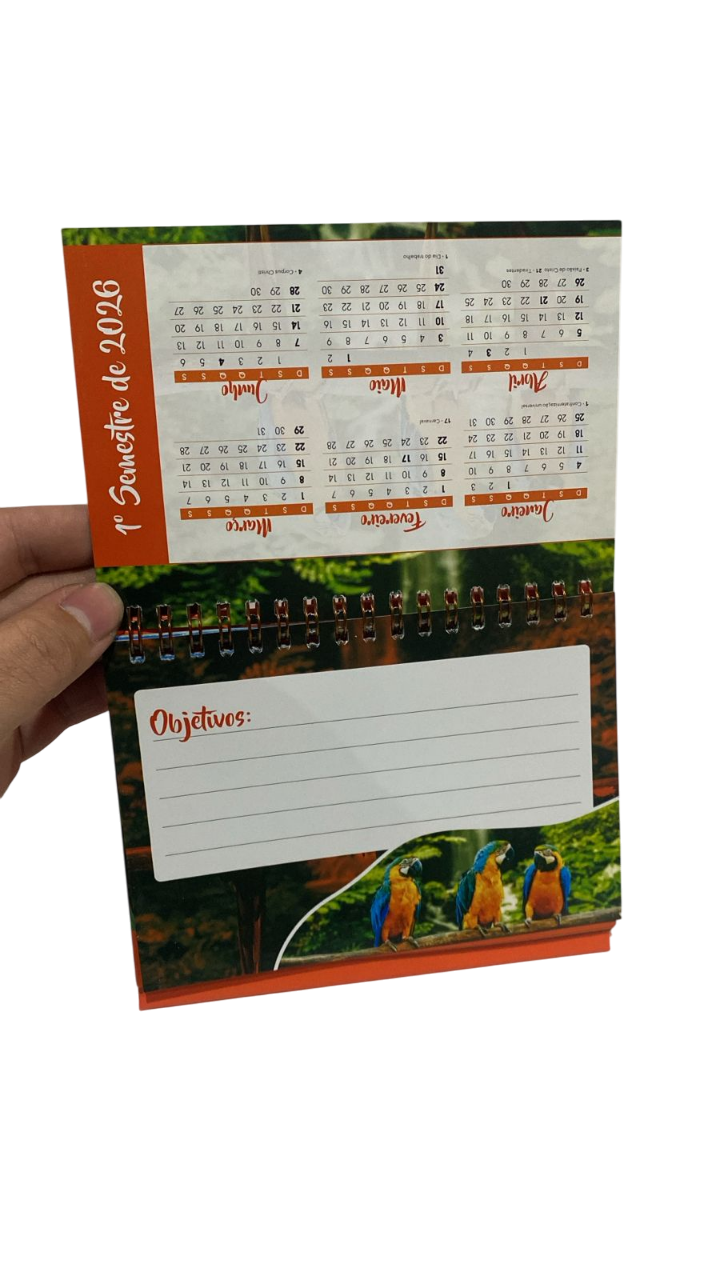 lindo calendario de mesa 2026 Paisagem, contem: objetivos do comeco e do meio do ano, feridos, epocas de lua e mensagens.