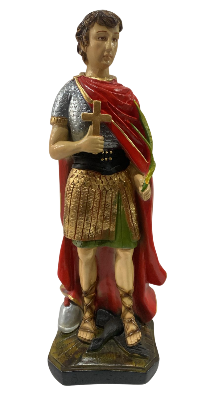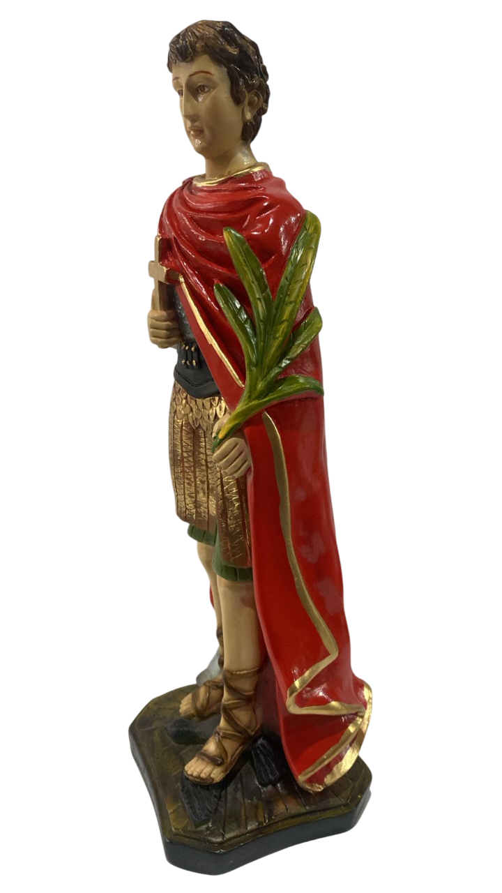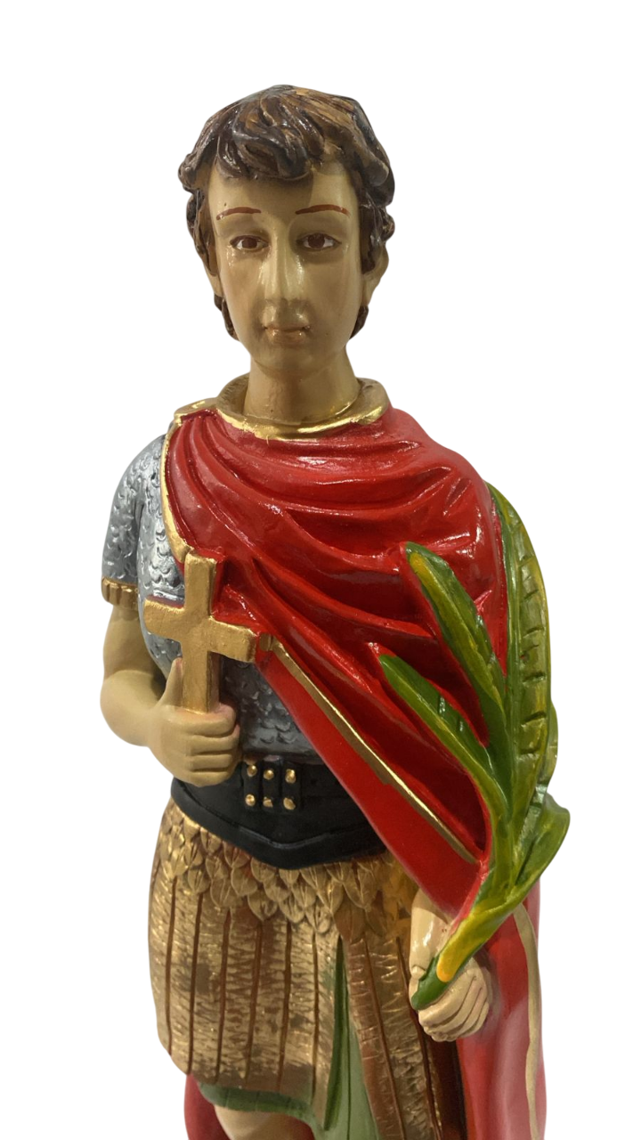 Santo Expedito, Possui aproximadamente 40cm de altura. (Medidas podem variar até 2cm para mais ou menos por se tratar de imagens em gesso).Tinta automotiva em todas as imagens e uma camada de seladora por baixo da pintura, garantindo melhor fixação da tinta na imagem e evita que a imagem descasque ou arranhe com facilidade.